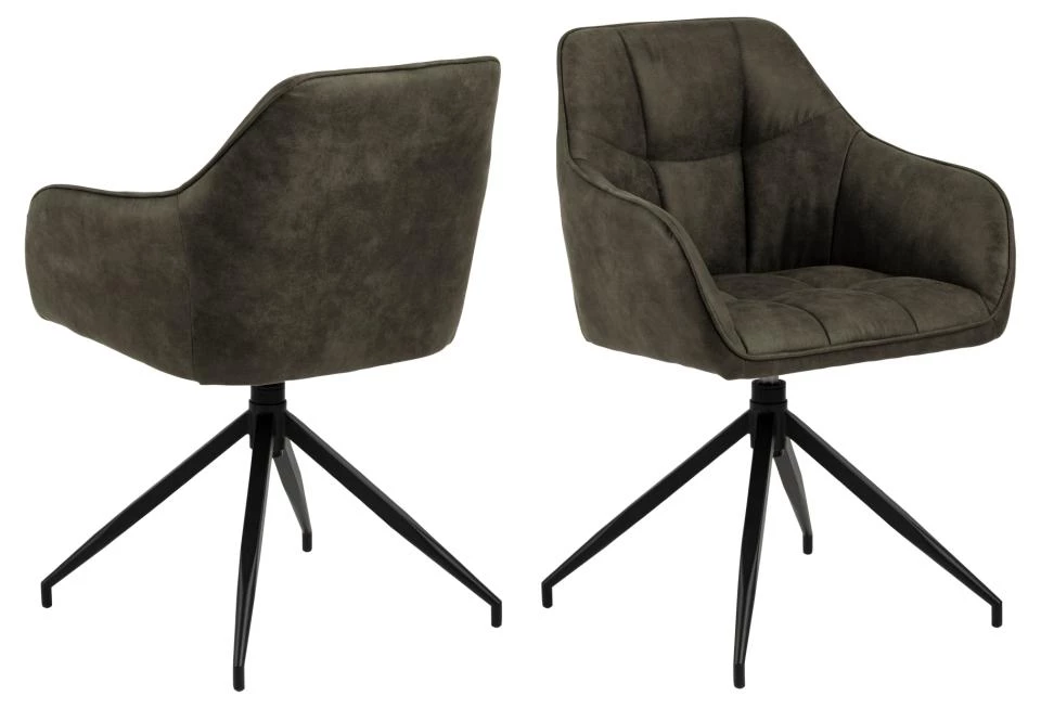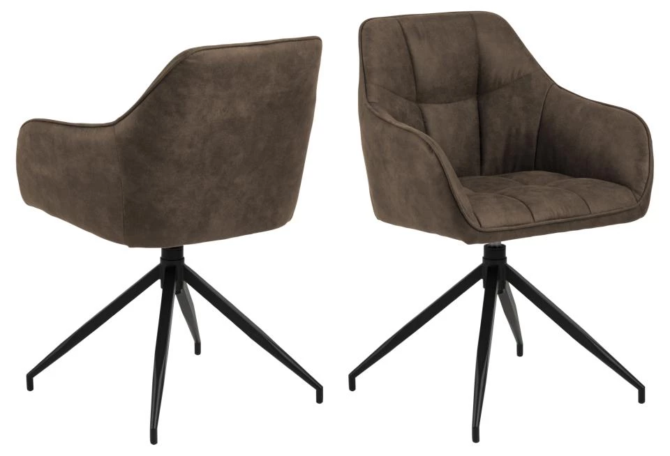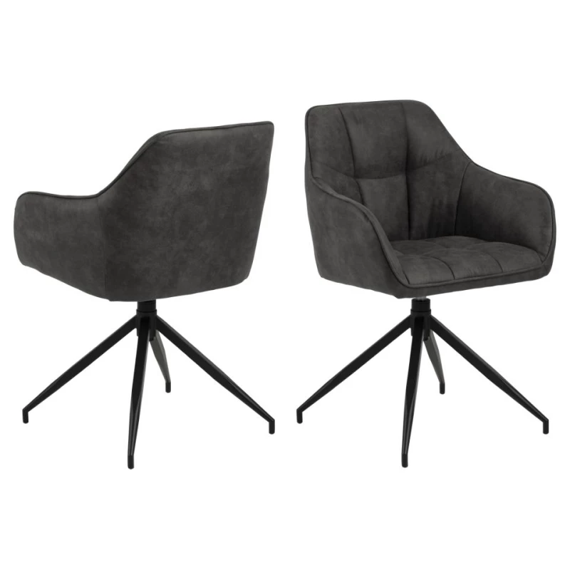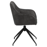Breng design en comfort in uw eethoek. De zachte bekleding is voorzien van een stoer stikpatroon wat de stoel nog spannender maakt. Je kunt ook gemakkelijk omdraaien omdat het op een 4-armige zwarte spinbasis staat.