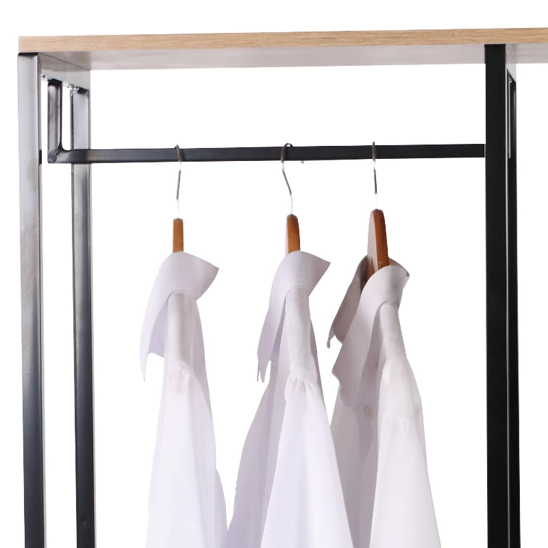 Dit kledingrek is een mooie toevoeging op een slaapkamer of in een inloopkast.