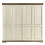 Kleerkast in landelijke stijl, in wit afgewerkt met een houtstructuur.