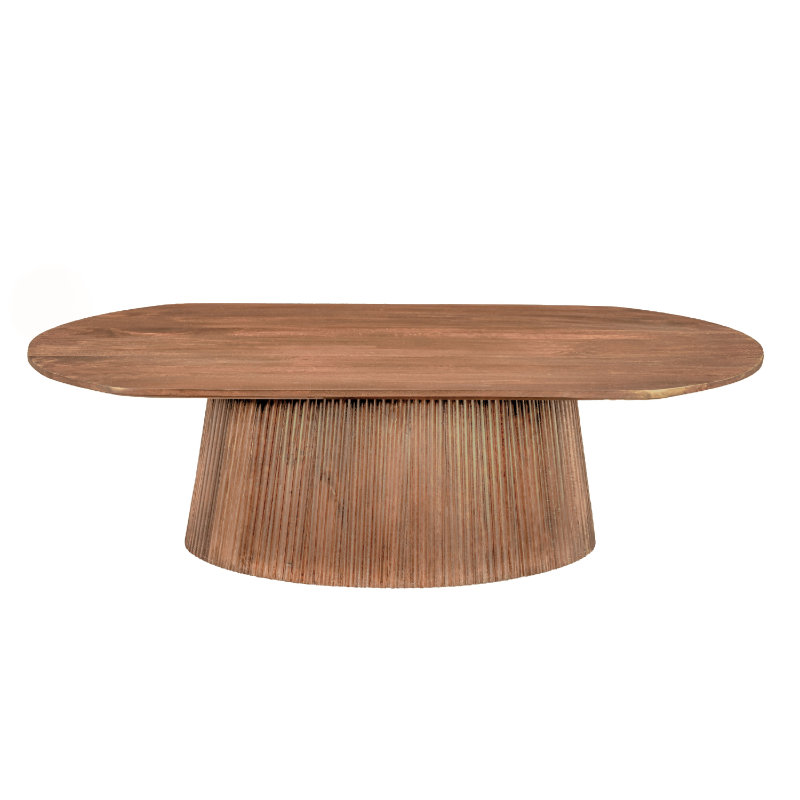 Tafel Storm, gemaakt van mangohout, heeft een unieke poot, deze middenpoot is ontworpen met allemaal verticale latjes van mangohout.