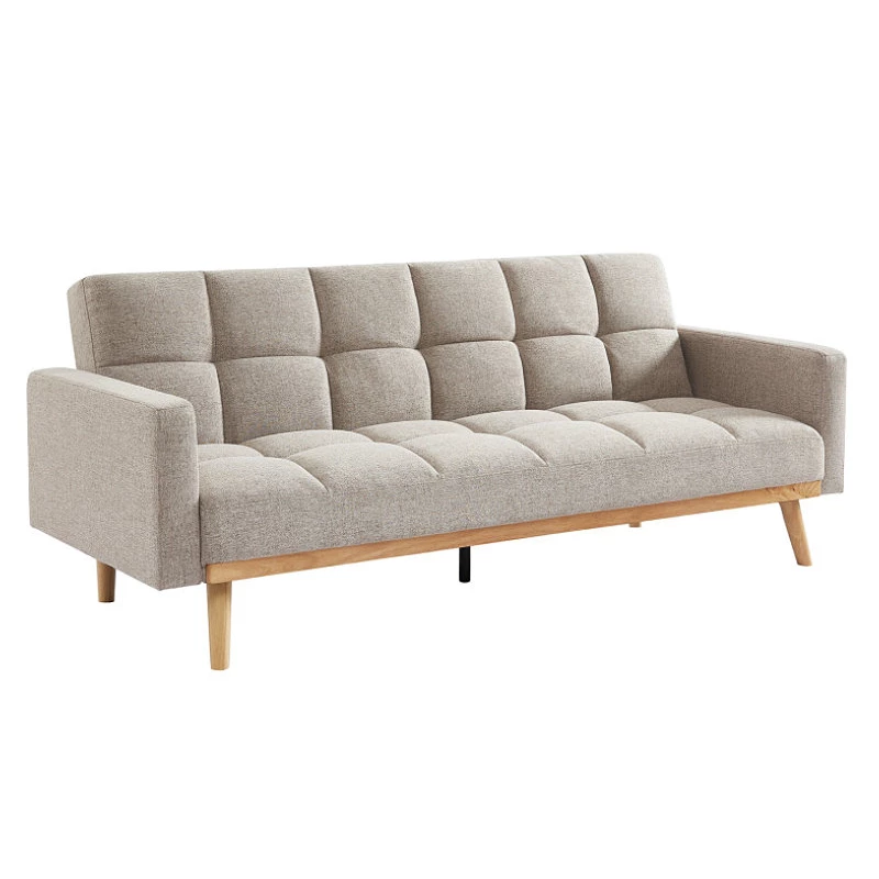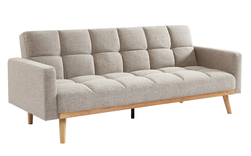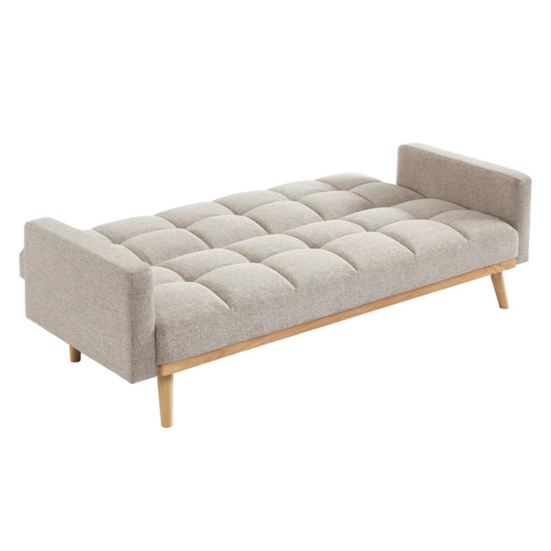 2,5-zits slaapbank in een grijze stof, stijlvol en praktisch.