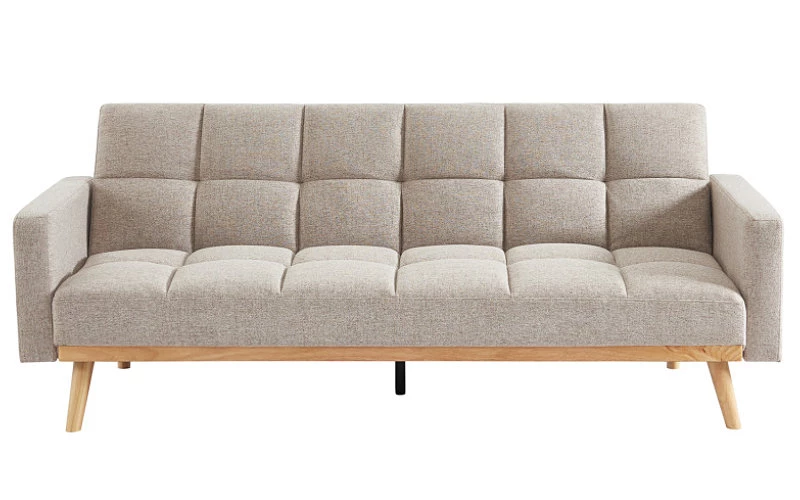 Het zetelbed is voorzien van 2 kussens en taps toelopende poten.