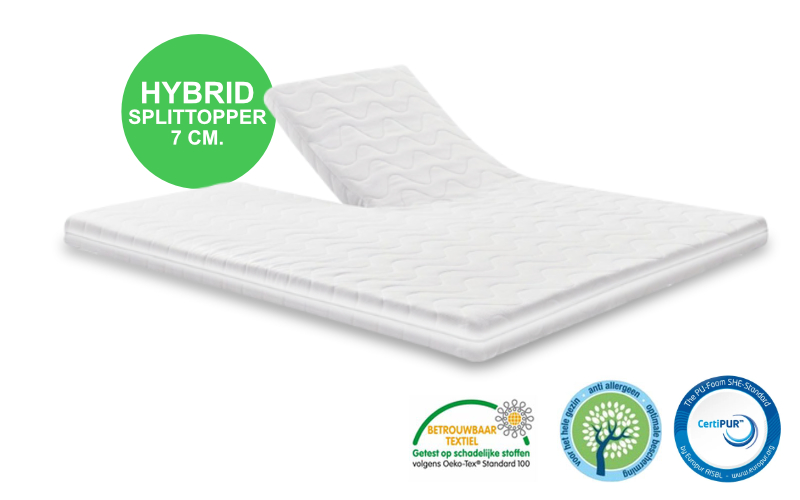 Heb je het snel warm in bed en transpireer je veel kies dan voor deze hybrid splittopper van 7 cm voor comfort en 9 cm voor het ultieme comfort dat ook jij verdient.