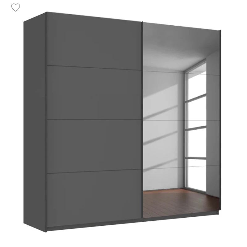 Zweefdeurkast met 2 deuren waarvan 1 deur in metallic grijs en 1 spiegeldeur.
